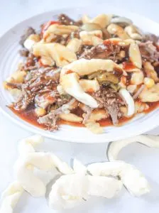 Roast Beef Dinner Poutine is a hearty meal that will satisfy your taste buds and fill your belly! This delicious recipe serves 4 as a meal but can be spread further as a snack.