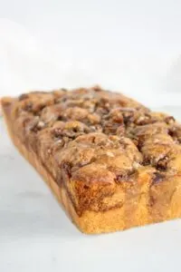 I like to get about 10 slices from this Apple Fritter Loaf recipe.