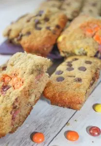 You can bake them plain or sprinkle each one with the topping of your choice. I used chopped pecans, mini candies and dairy free mini chocolate chips. Choices will depend on your personal taste, occasion or what students are allowed to take in school lunches.
