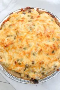 Then I baked the Beef and Tomato Pie in a preheated 400F oven for 40 – 50 minutes or until the topping was golden.