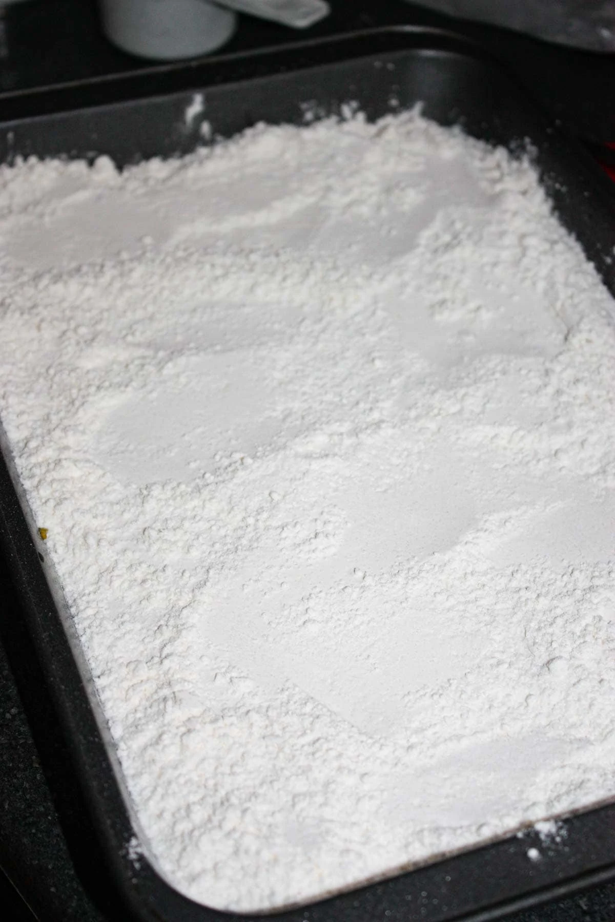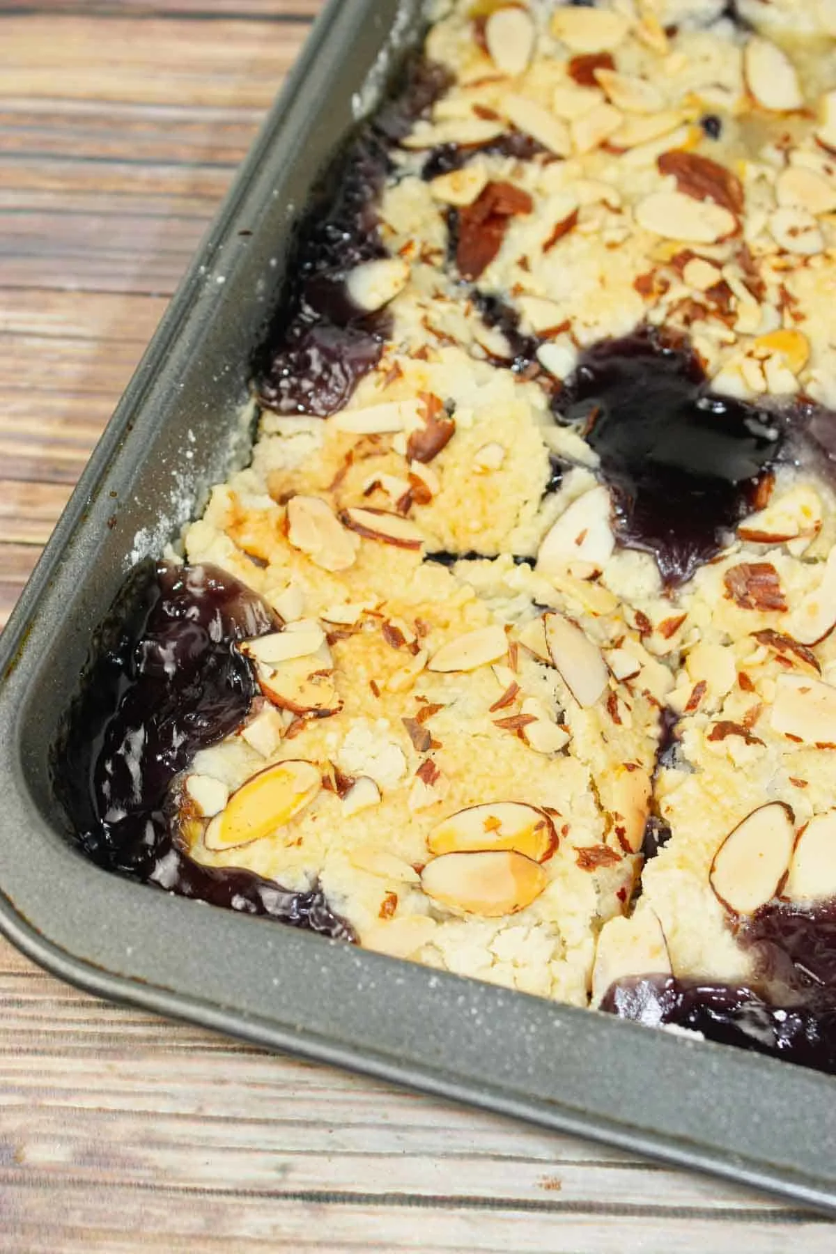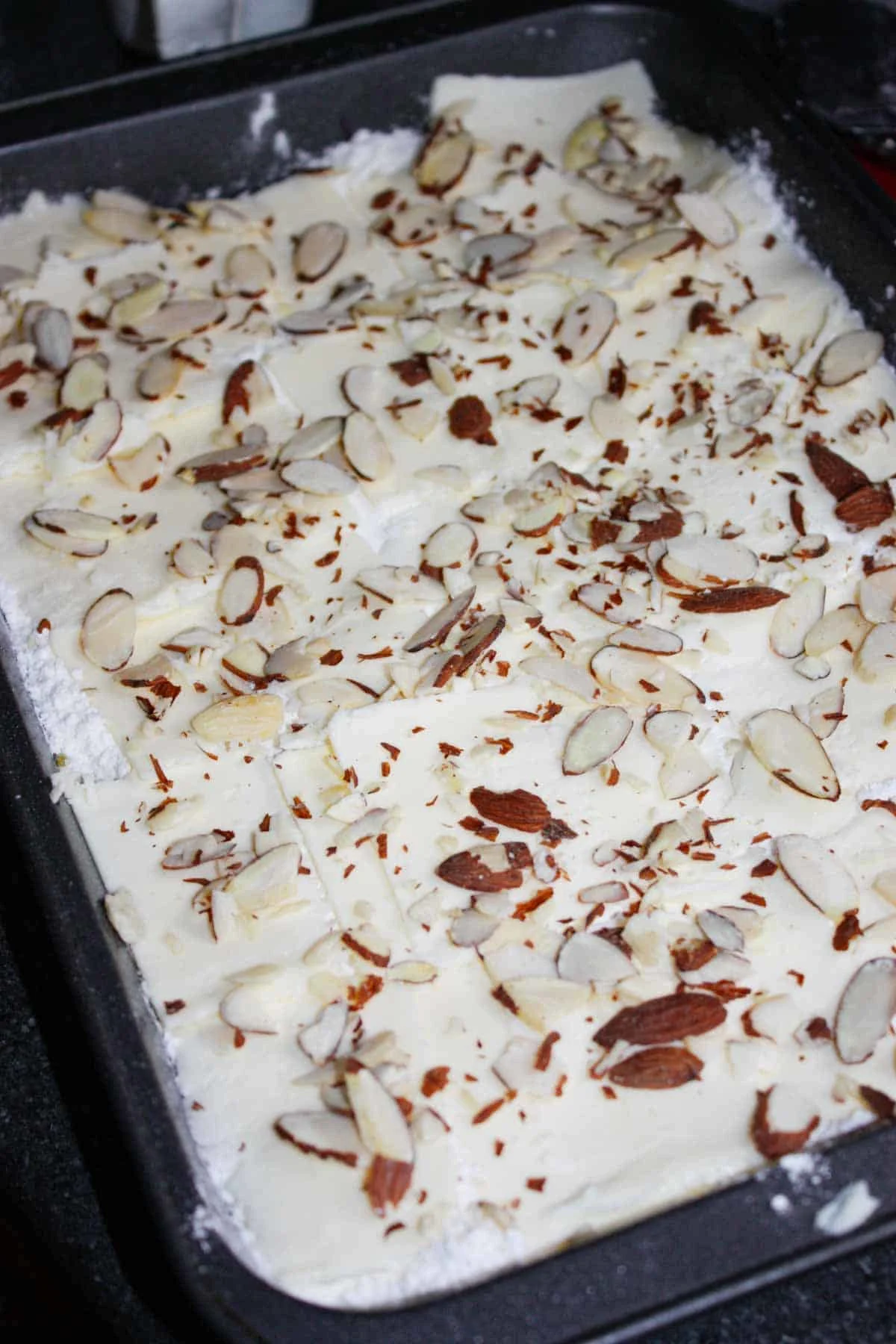 Once the cake was covered in butter I sprinkled some sliced almonds on top.