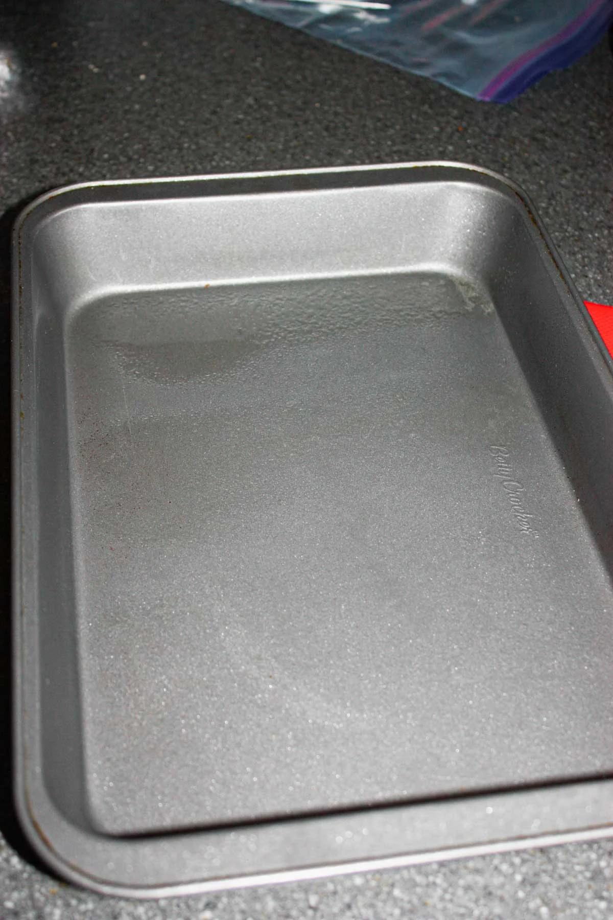 - Preheat oven to 350F and grease a 9″ x 13″ baking pan.