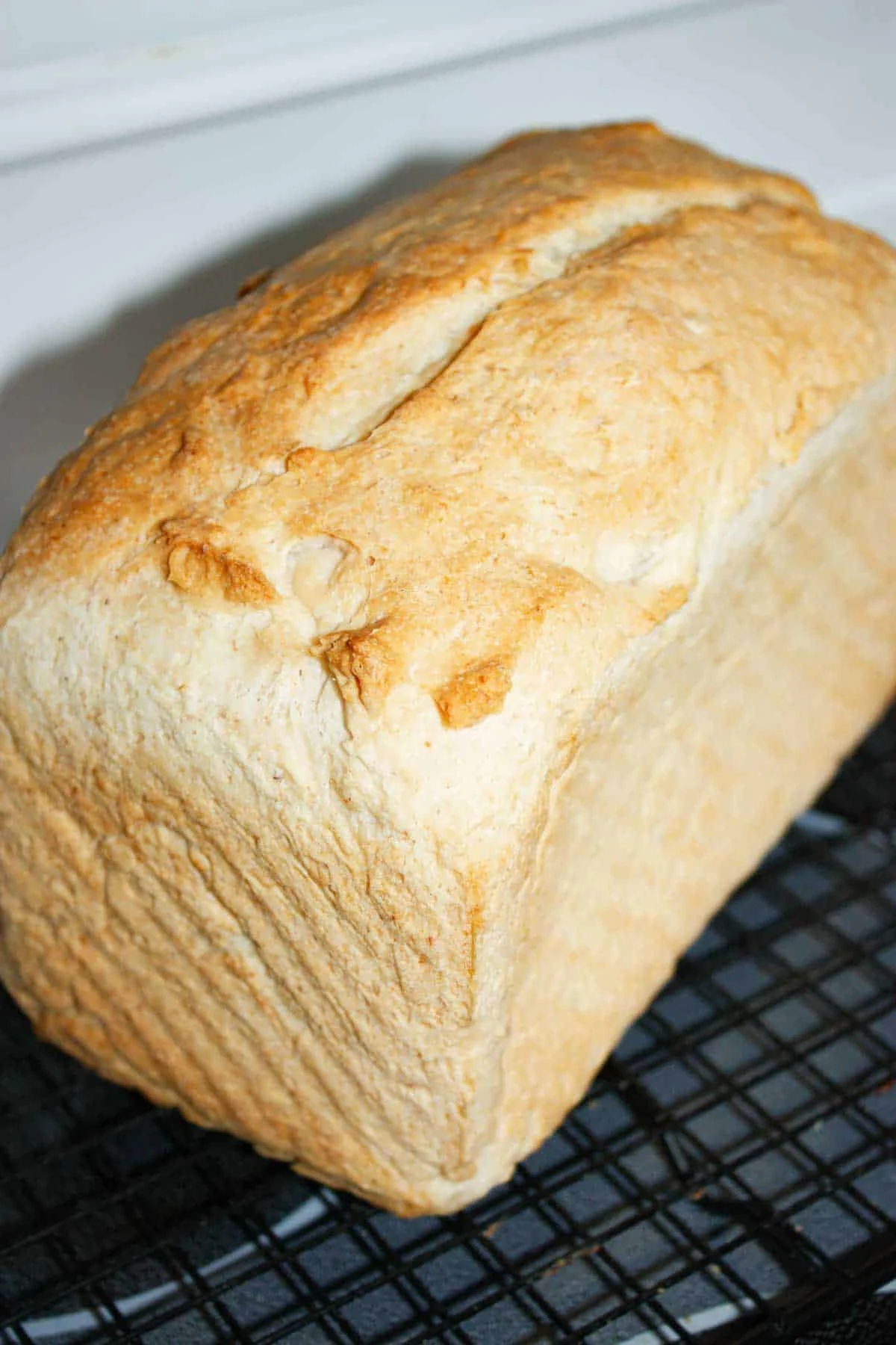 - Remove from oven and immediately flip loaf out onto a cooling rack. Bottom should sound hollow when tapped.