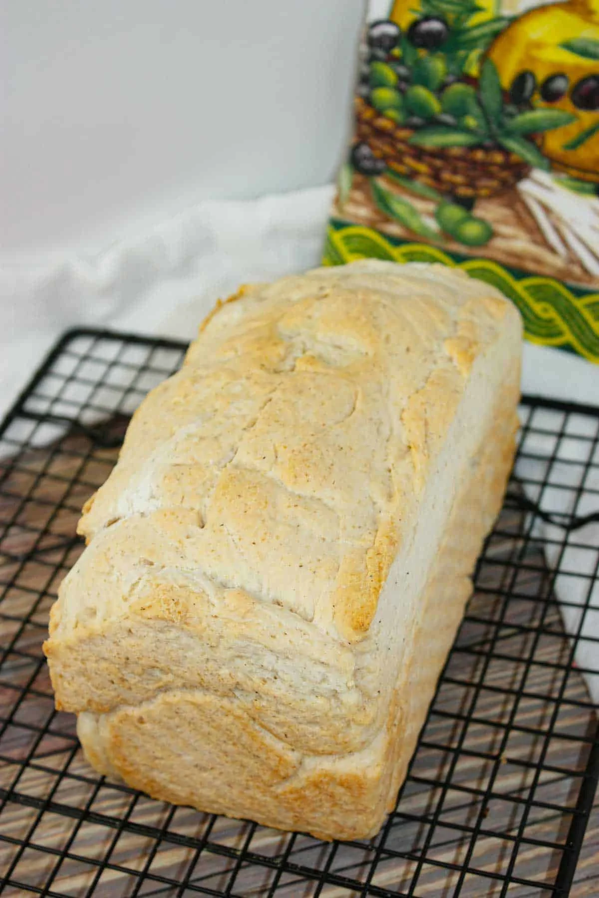 Then I immediately flipped the loaf out of the pan onto a cooling rack. It should sound hollow when tapped on the bottom. I allowed it to cool before slicing.
