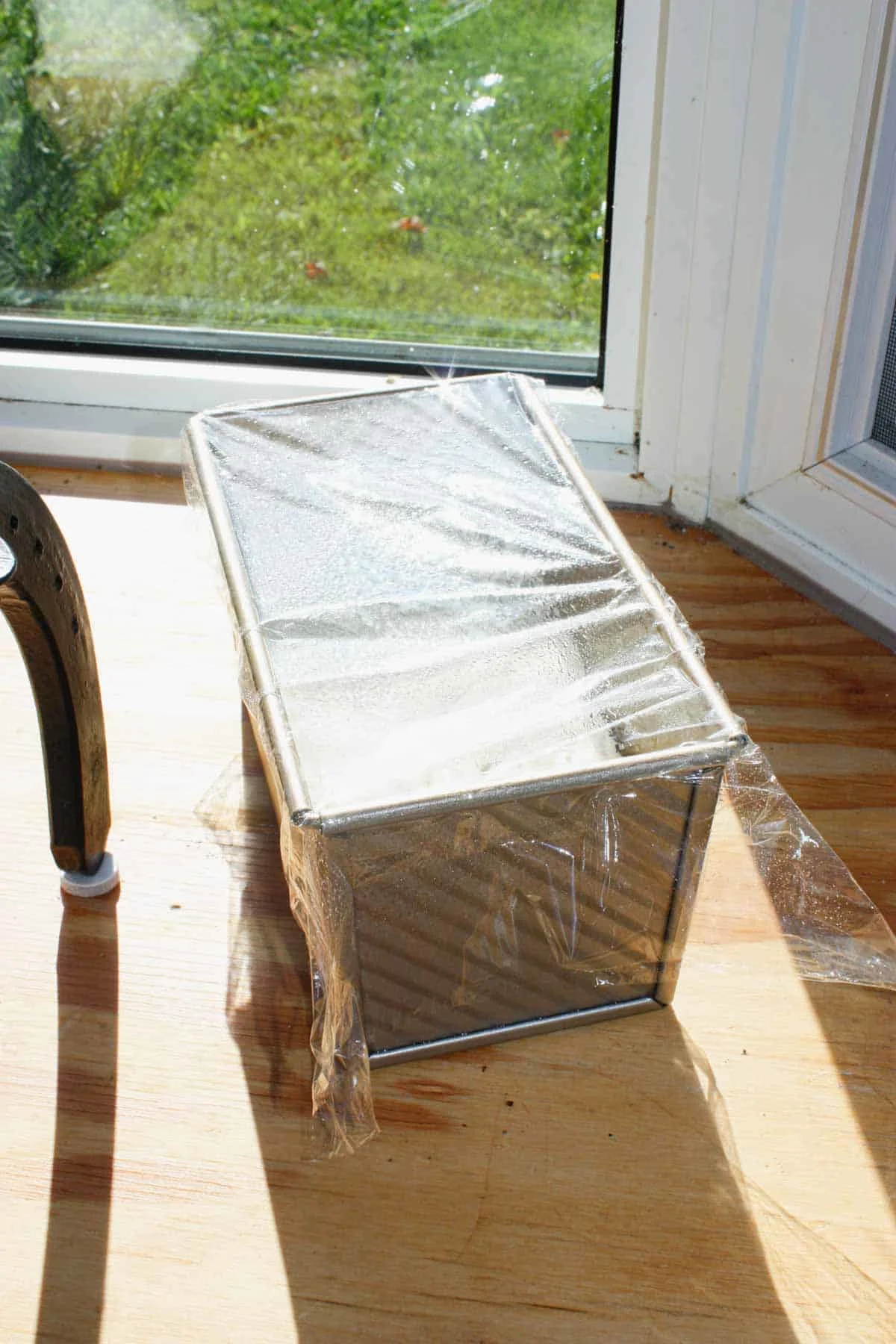 Next I sprayed some plastic wrap with cooking spray and used it to lightly cover the loaf pan. I then placed the pan in a warm place and left it to rise for about 1 hour to 1 1/4 hour or until the dough was just below the top of the pan.
