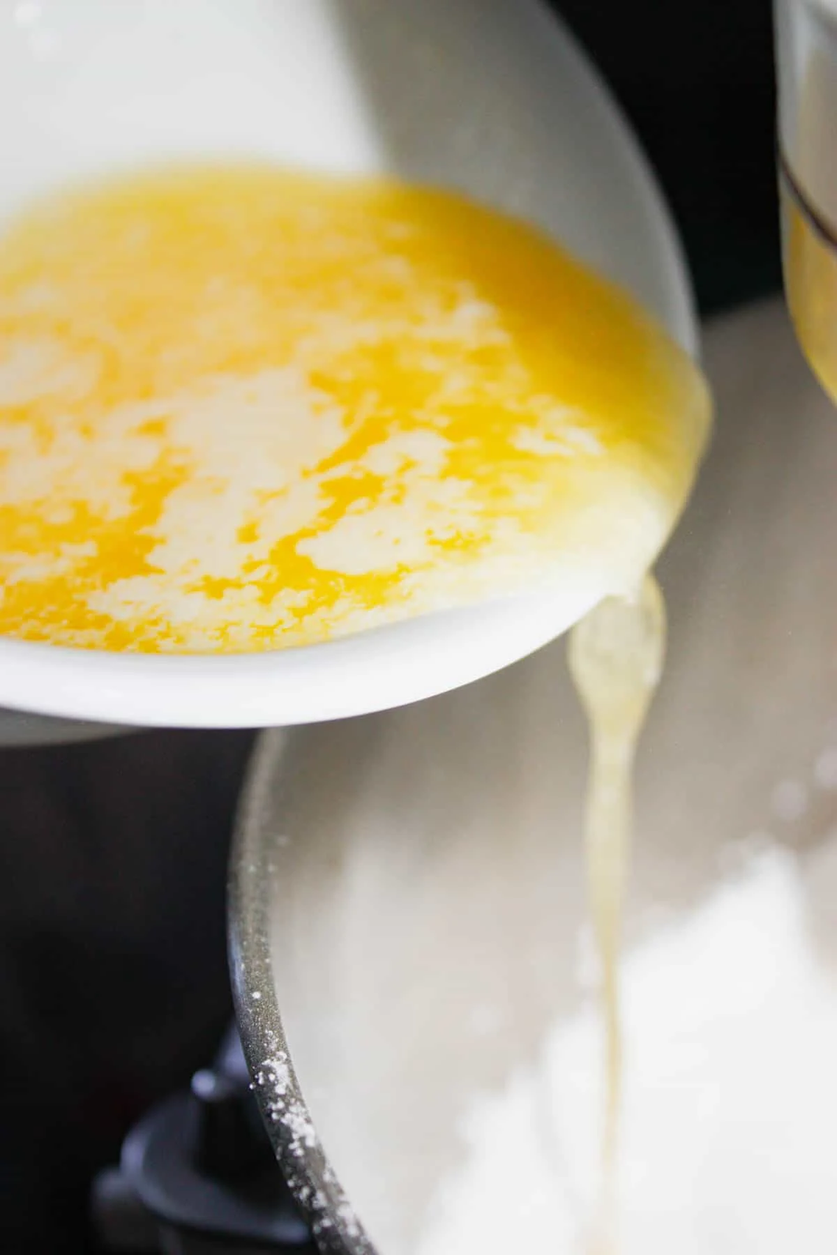 Next I poured the melted butter into the dry ingredients while the mixer was still on low.