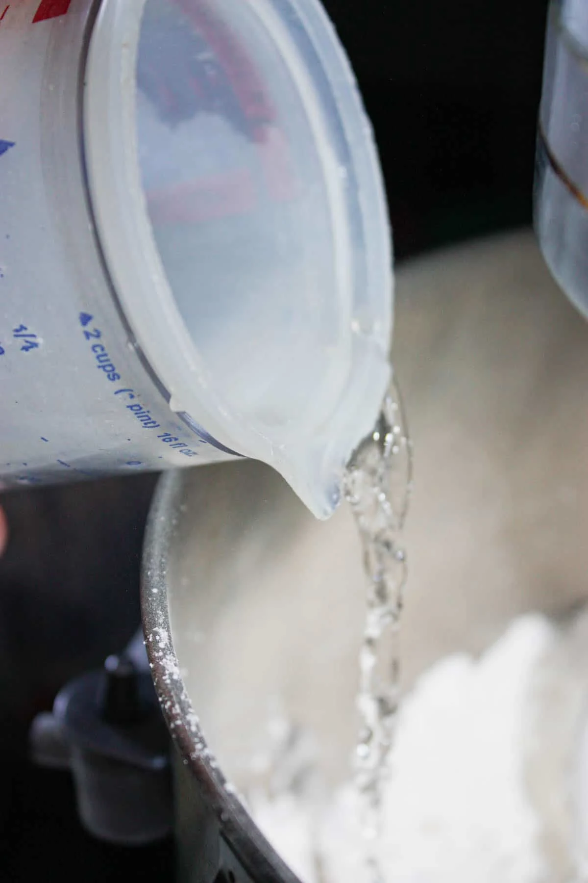 With the stand mixer on low I poured in some warm water.