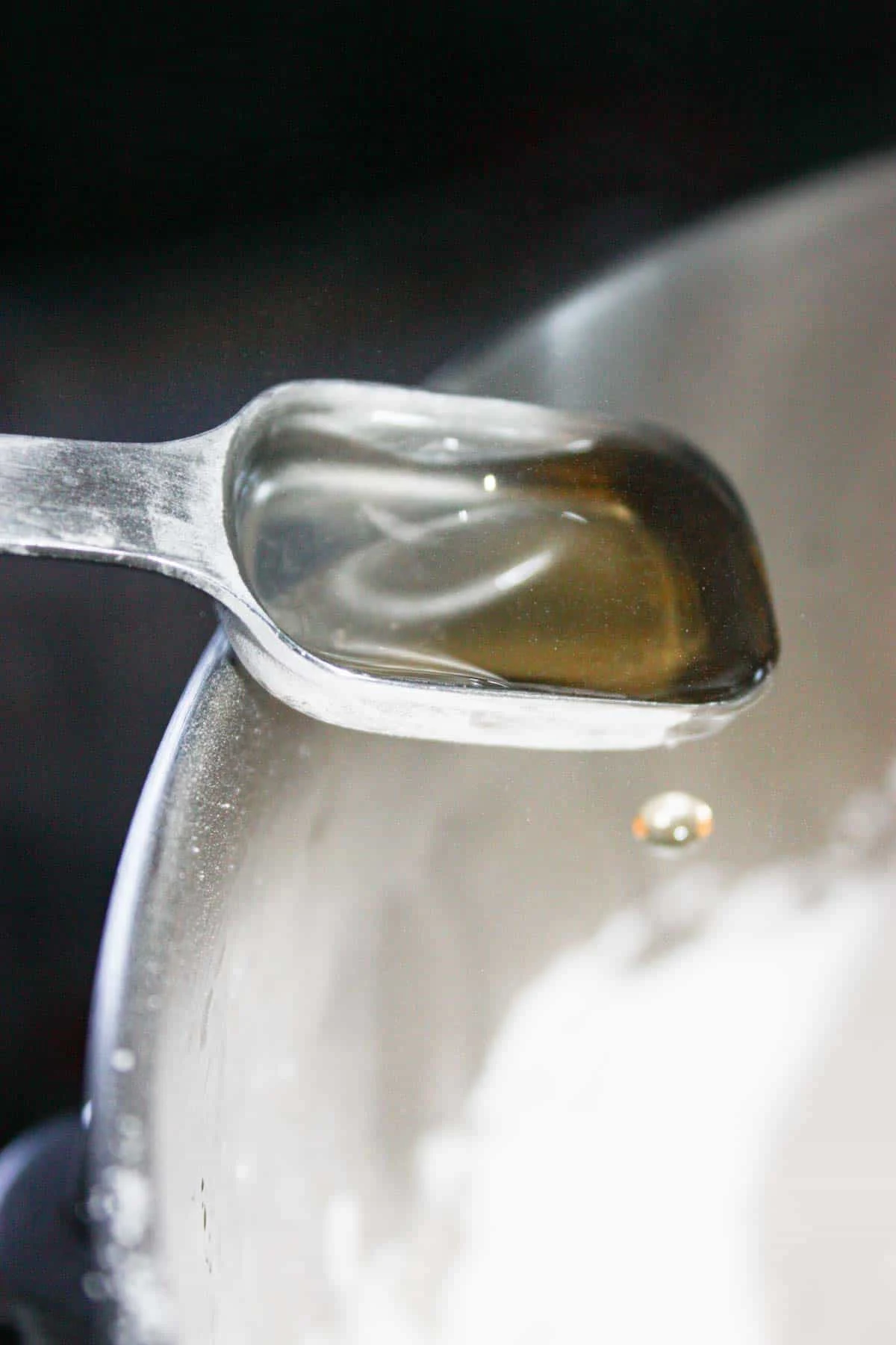 I poured in the apple cider vinegar. Then I switched the mixer to medium speed for 5 minutes.