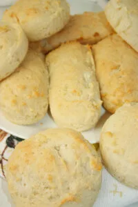 This recipe yields about 5 hamburger buns and 4 hotdog buns but I often make them thinner since they are a bit heavier than wheat buns and then get 6 of each.
