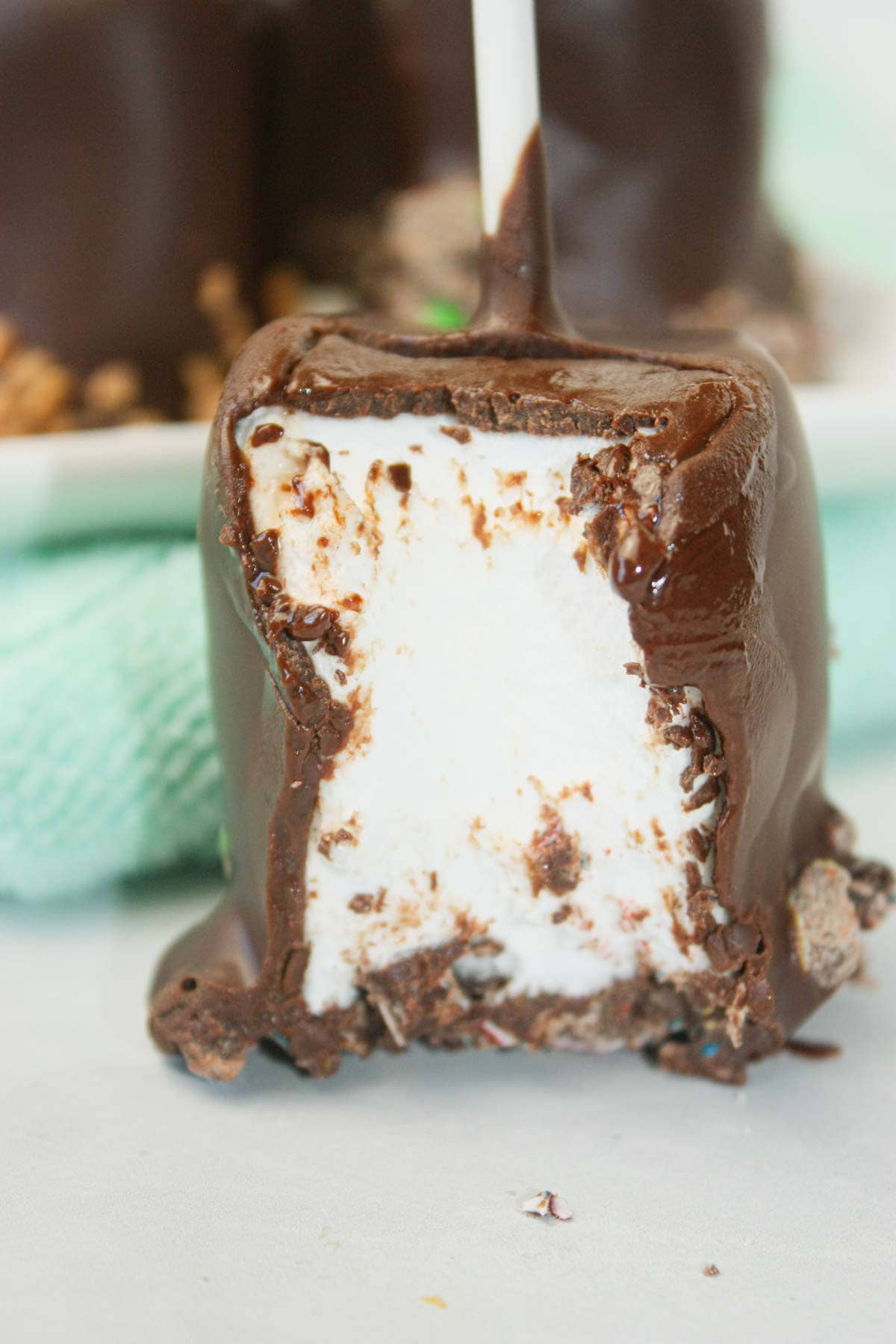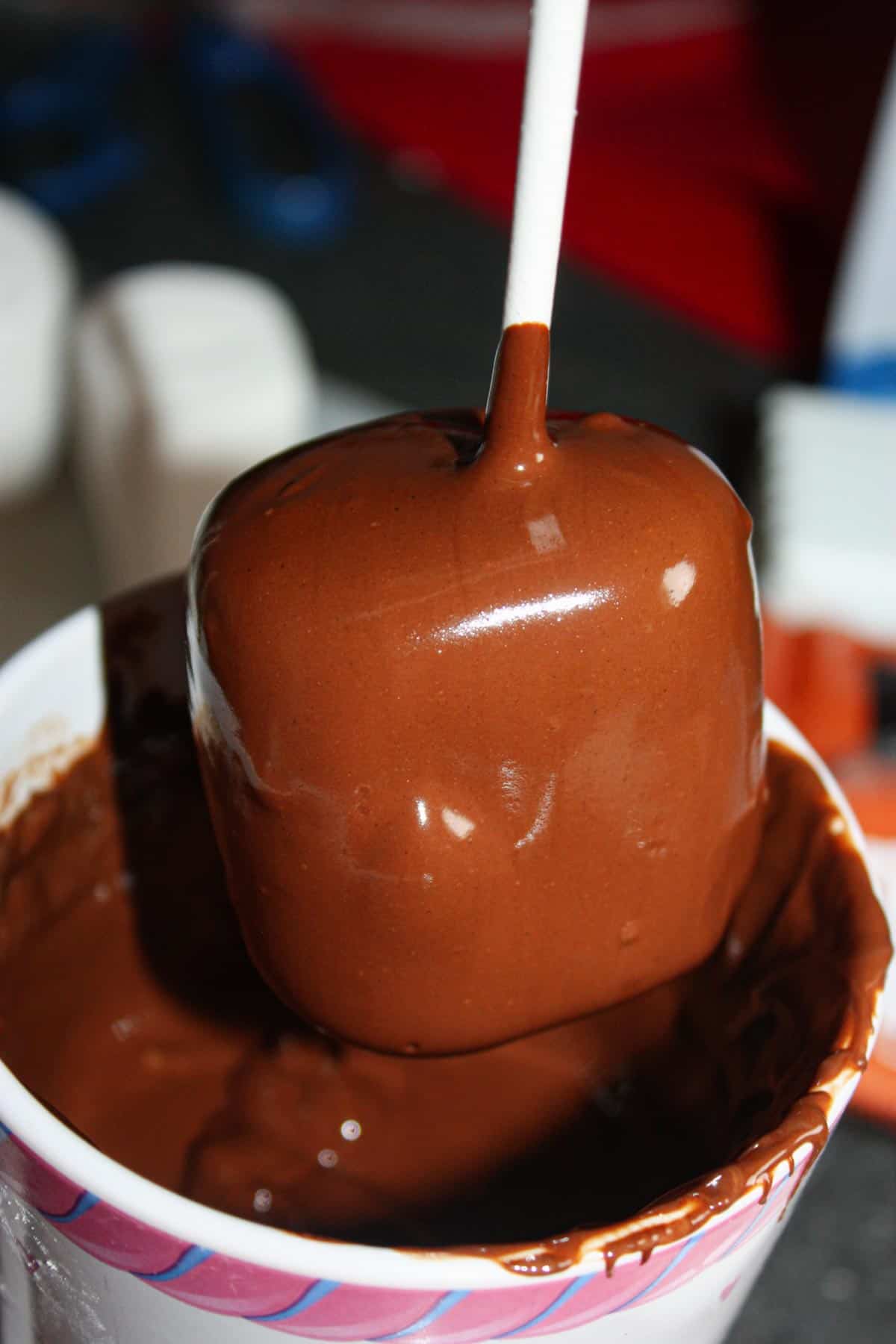 Once dipped in a smooth coating of melted chocolate, the marshmallow transforms into something extra indulgent.
