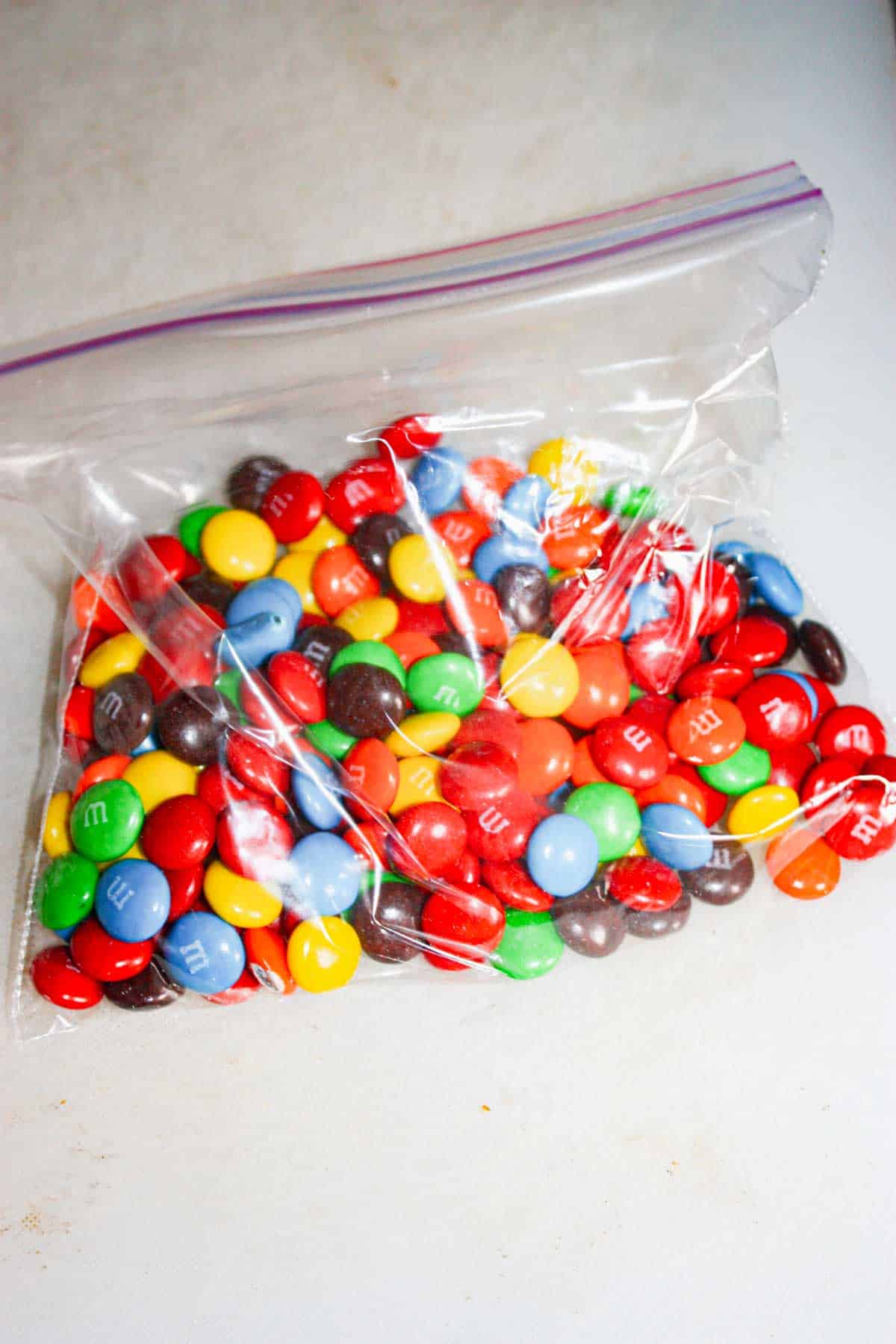 I then put some M&Ms in a ziplock bag.