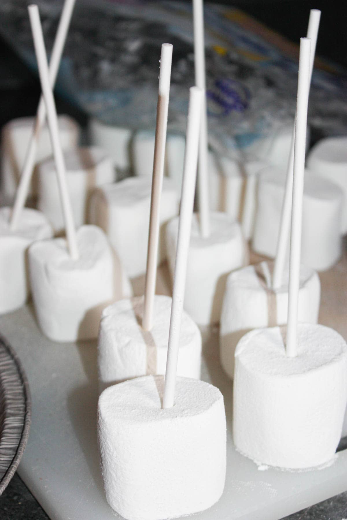 Then I put a lollipop stick into the center of each giant marshmallow.