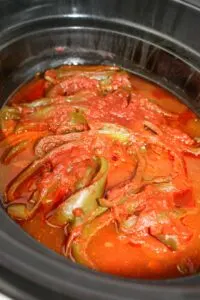 Every spoonful of this slow cooker recipe is loaded with pork, spicy tomato sauce, green pepper and onions.