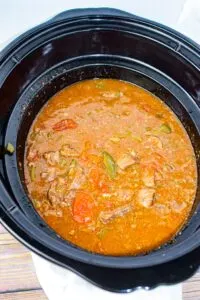 Before starting to make this slow cooker recipe I sprayed my Crock Pot with cooking spray.