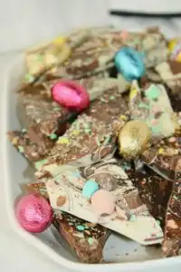 Easter Bark makes a wonderful dessert for your Easter celebration, offering a sweet ending to any meal. It’s also a clever and tasty way to use up any leftover Easter eggs you might have on hand.