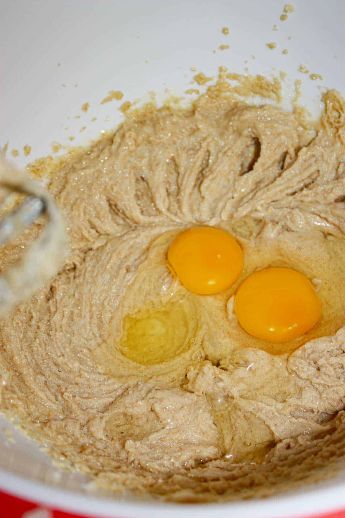 4. Add the eggs and beat again.