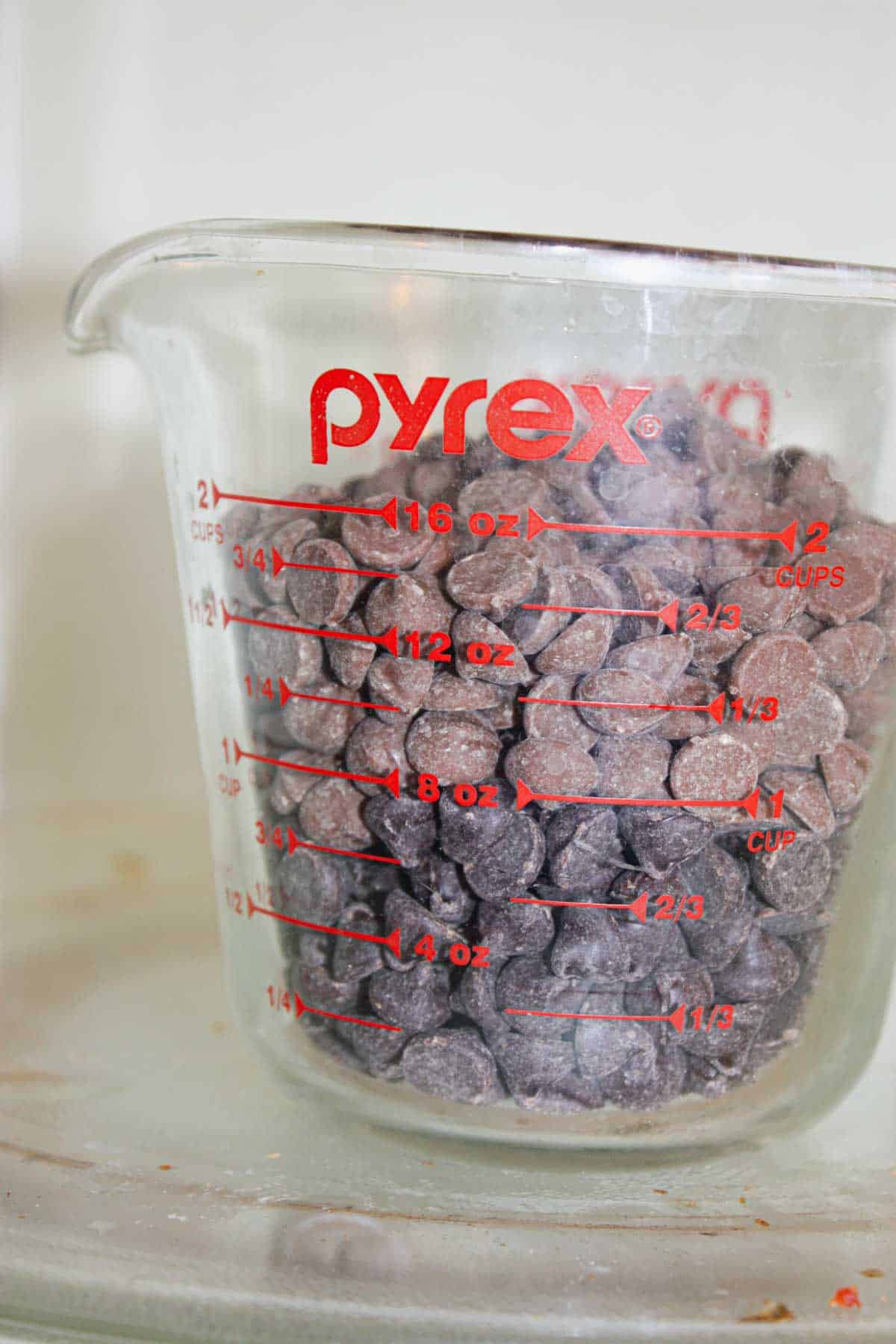 - Melt the chocolate chips in the microwave for 20 second intervals. Stir between intervals.