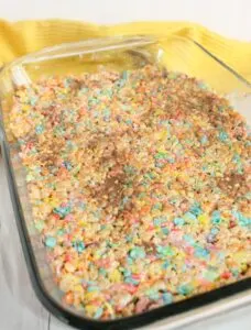 I allowed the Fruity Pebbles Rice Crispy Treats to cool before cutting into them.