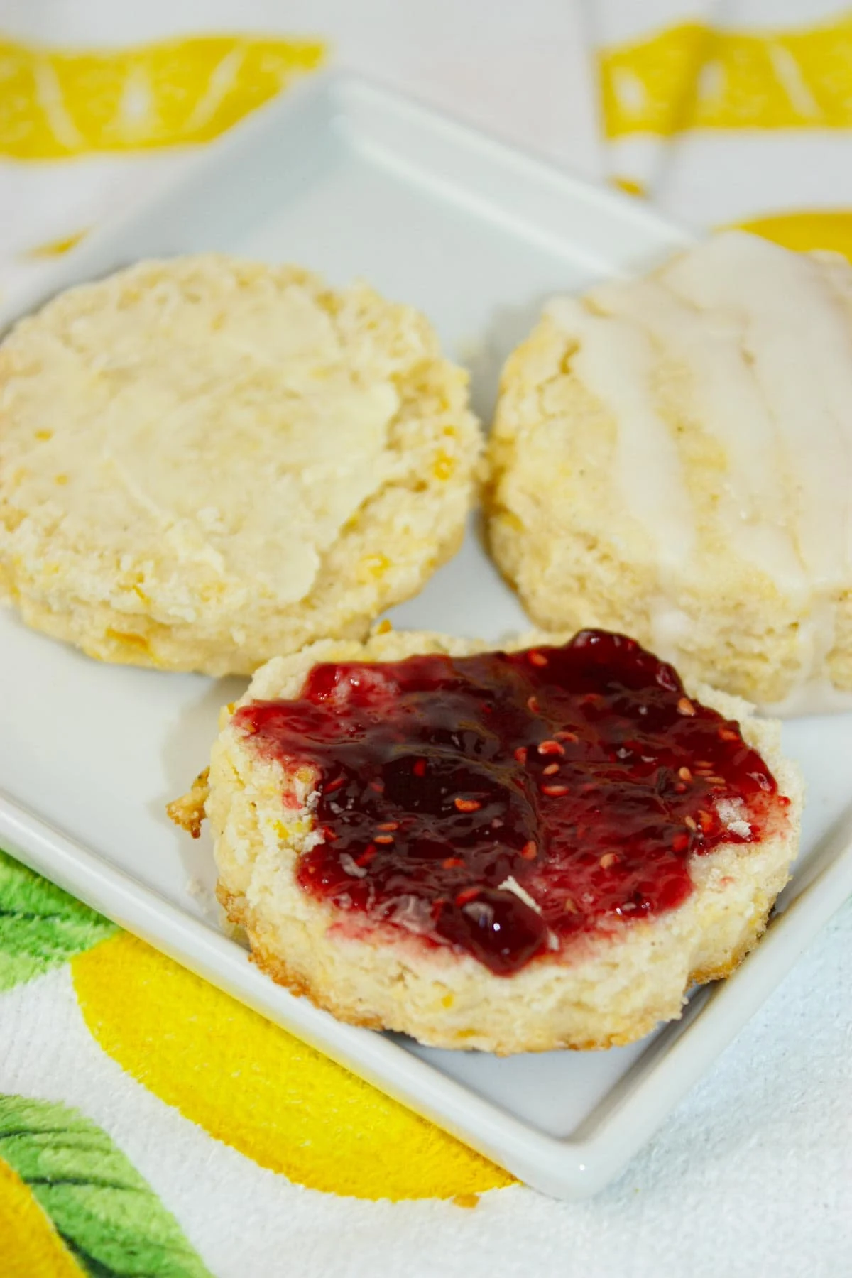 Gluten-free jam — blueberry, raspberry, or peach pair especially well with lemon.