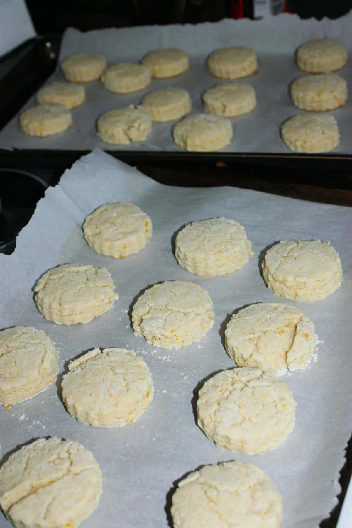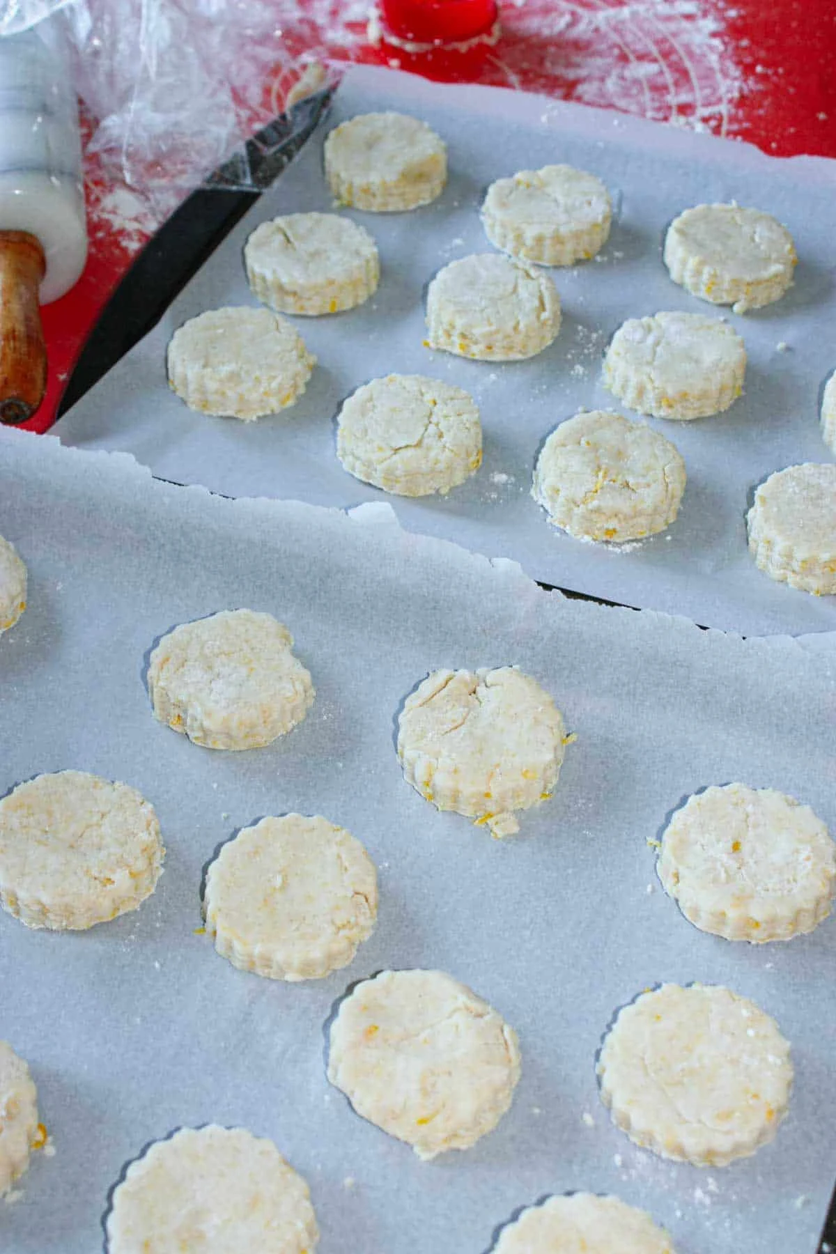 Then I transferred the cut rounds to a parchment paper lined baking sheet.