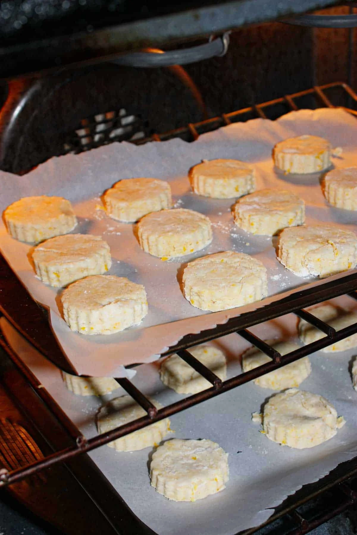 - Transfer the circles to the parchment paper lined baking sheet and bake in the preheated oven for 20 minutes or until just turning golden brown on the bottom.