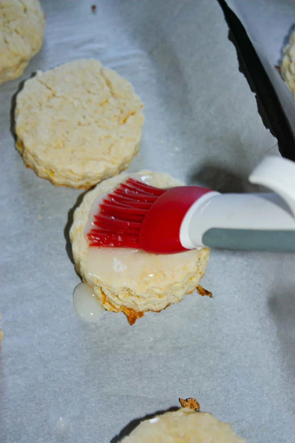 - Brush the glaze on top of each scone and then allow to cool. You will not need all the glaze.