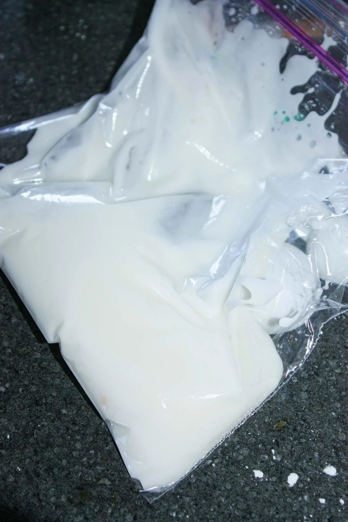 Then I transferred the icing to a ziplock bag and cut a small hole in the corner.