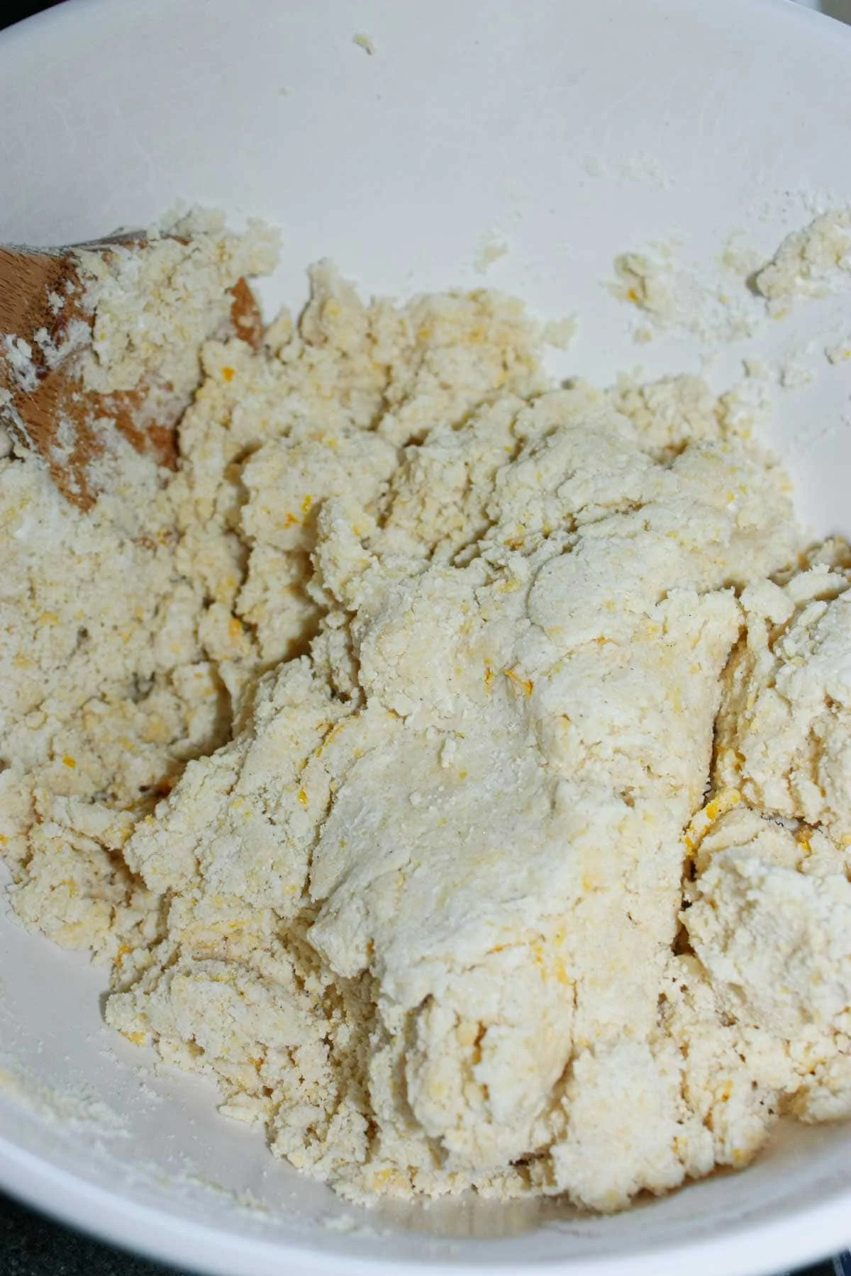 I used a large wooden spoon to stir the ingredients together until it formed a soft dough.
