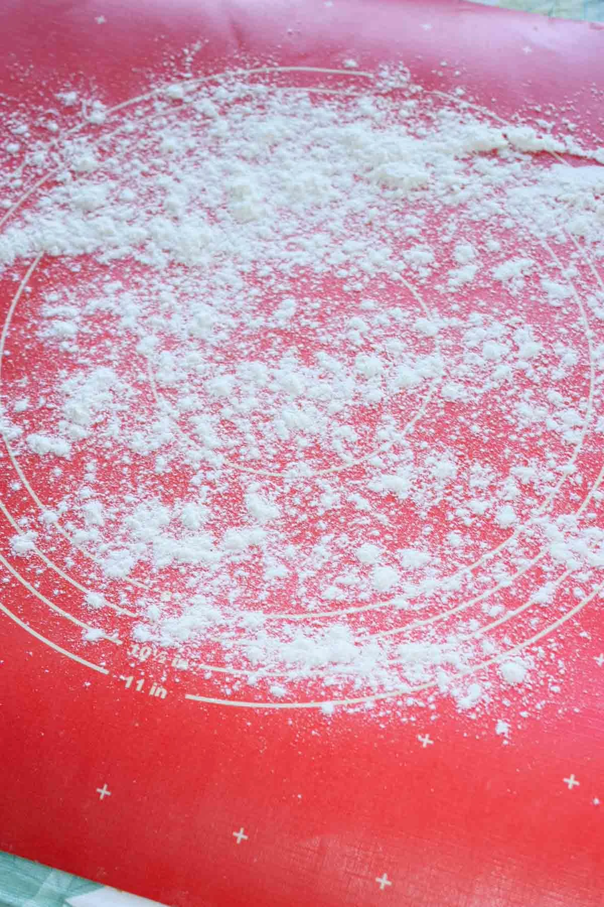 I sprinkled a bit of flour onto a pastry sheet before dumping the dough out onto it.