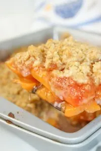 Gluten Free Peach Crisp is an easy dessert recipe that can be served warm or cold.