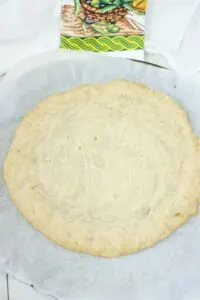 I used a spoon to spread the dough into 12″ circles.  I made them a little higher around the edges.