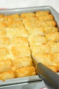 12. Bake in the preheated oven for 40- 45 minutes or until Tater Tots are browned to your taste.