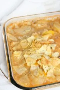 19. Serve and spoon sauce over top and some reserved potato chips if desired.
