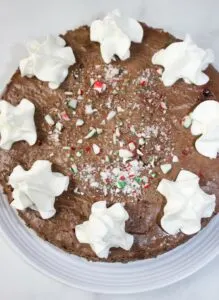 I crushed up some more peppermint candy to sprinkle on the top and decorated it with some dairy free whipped topping just before serving.