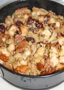 Instant Pot Festive Stuffing is a twist on my traditional stuffing. This gluten free stuffing has the added flavours of dried cranberries, bacon and pecans.