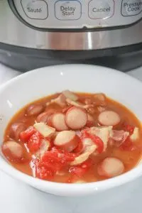 Instant Pot Pork and Bean Soup is an easy comfort meal for the whole family. Loaded with bacon and weiners it is sure to be a hit with young and old alike!