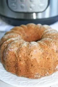 Once the pressure was released I removed the lid and lifted out the bundt pan.  I immediatlely removed the tinfoil.