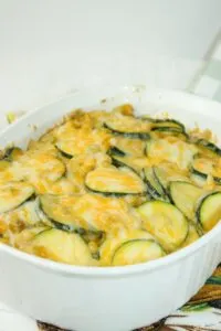 Mexican Squash Casserole is a quick side dish that can easily be whipped up on a busy week night. This gluten free recipe is loaded with corn and topped with a flavourful cheese blend.