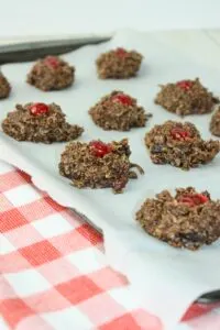 I pressed a half cherry into the top of each No Bake Cocoa Quickie.