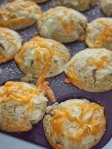 Before placing the muffins in the preheated oven I sprinkled some grated marble cheese on the top of each one.