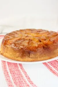 Peach Raspberry Upside Down Cake is an easy dessert recipe that can be served warm or cold.
