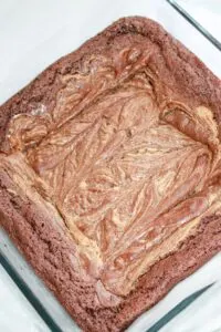 - Use a knife to create a marble effect with the peanut butter mixture.