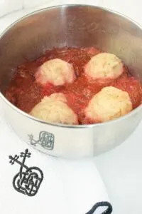- Scoop the dough balls out with some of the stewed mixture into serving bowls.