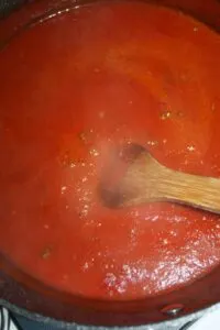 Once the sauce boiled I lowered the heat to let it simmer for 4 -5 hours. I stirred it occasionally.