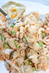 Salmon Casserole is a staple in our home. This gluten free version of a classic dish is prepared on top of the stove and is a great meal served hot or cold!