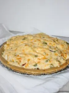 Once the ingredients were well combined I spread it evenly on top of the Tomato Pie.